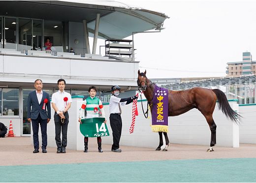 2022年の中京記念勝ち馬・ベレヌスについて 24/5/15 2022年の中京記念(G3)での重賞初制覇を筆頭に、平地と障害でトータル6つの勝利を挙げたベレヌス。 このたび、現役生活に別れを告げ、珠洲ホースパークで第2の馬生をスタートすることになりました。 珠洲ホースパークへは近日中に移動する予定ですが、その際は改めて報告させていただきます。 2022年中京記念 外連味のない逃げで見事後続を完封 2022年中京記念 得意の小倉で遂に花開く