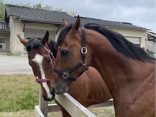 自身唯一の重賞勝ちがともに中京記念という、グルーヴィット&ベレヌスのコンビが仲良く栗東近郊発の馬運車に乗り込み、5月24日午後3時、珠洲ホースパークへ無事入場しました!
